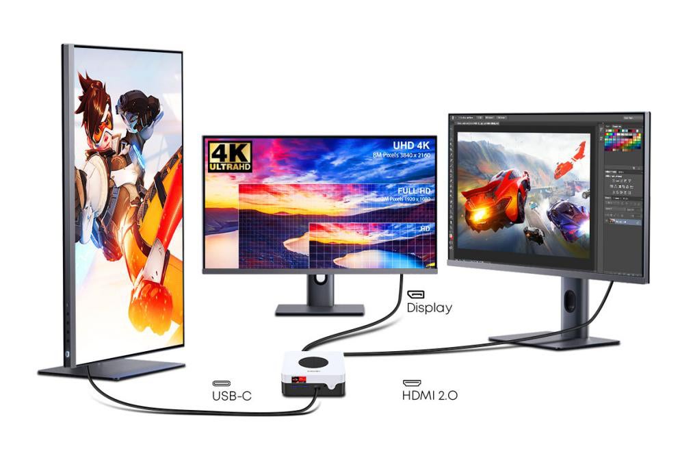 「LarkBox」シリーズの最新モデル「LarkBox X」は、約127×127×49mmのコンパクトサイズ。3台の4Kモニターへ同時に出力でき、作業効率が格段に向上します。